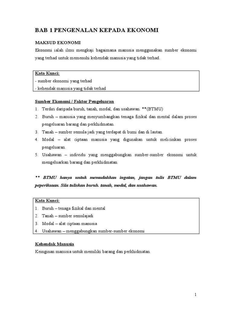 Nota ringkas dan padat ekonomi tingkatan 4 bab 1 pengenalan kepada.